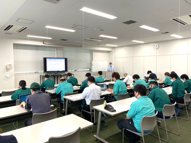 新規に採用した乗務職社員を対象に、入社から単独運行までの初期教育や、単独運行開始後も定期的な添乗指導などを行っています。また、これ以外にも本社にて座学・実技の研修を行っています。さらに各営業所の業務や納品先の特徴、事故傾向に合わせた共育を進めています。