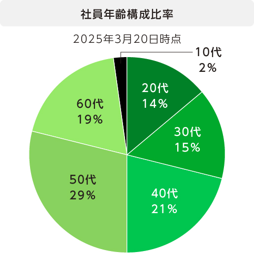 さまざまな世代の方を雇用していますが、シーエックスカーゴでは定年後も働きたいという方のために、65歳定年を迎えても、(勤務態度や健康状態を考慮し、希望があれば)70歳までパート社員として働くことができます。