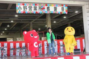 9月27日(日)、晴天の元、小野営業所で感謝祭が開催されました。小野営業所の社員だけでなく、小牧や尾道、埼玉からも社員が多数参加、中には前日の鳥栖の感謝祭が終わってから駆け付けた強者も!コープ商品食べ比べクイズや、今年入社した高卒新卒新入社員によるじゃんけん大会で会場は大いに盛り上がりました。