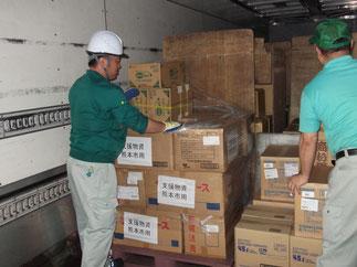鳥栖流通センターと外部倉庫から、熊本現地のセンター(旧東支所)などに向けて、支援物資が「待っている人のために」届けられようとしています。