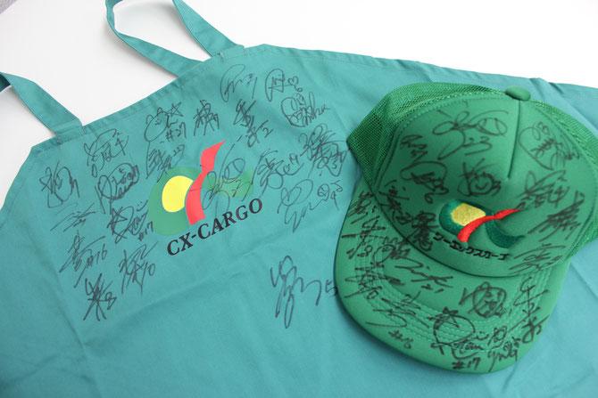 8月10日(水)、埼玉アストライアからチーム全員のサイン入りエプロンと帽子が届きました。1人ひとりのサインに背番号が入れ込まれた可愛らしいサインが書かれています。