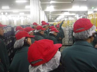 庫内見学では、入庫から出荷までの各エリアの作業見学いただき、視察団の方々は説明に熱心に耳を傾け、各所で写真撮影がされました。庫内見学後の質疑応答では、敷地を選ぶ基準や年間消費動向、地震・停電時の対応など様々な質問が飛び交いました。