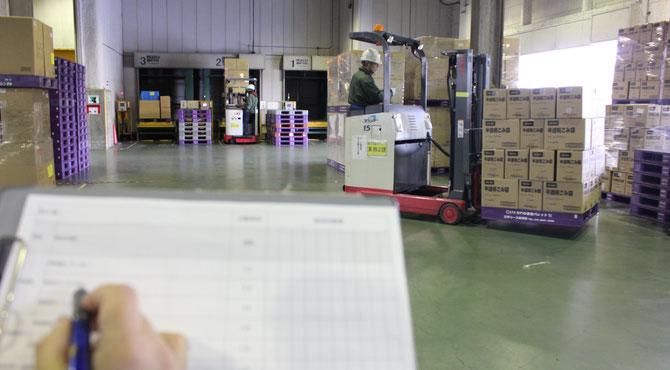 桶川流通センターでは11月24日(木)~30日(水)の1週間、フォークリフトの安全走行の強化、維持、繁忙期に向けた安全意識の向上を目的に、フォークリフトコンテストが開催されます。 各課のエリア(1F・3F)や時間帯(朝・昼・夜)ごとに、フォークリフトオペレーター同士が採点表を用いて評価を行い、フォークトレーナーも評価のみの審査員として参加します。採点は、フォークリフト操作共通手順の内容を理解し、遵守している事を前提に、「急制動」「目視確認」「指差呼称」の3項目について、「○△×」の3段階で行います。評価は期間中複数回に渡って日常のリフト乗務の様子の中で行い、各職ごとに総合評価が高いフォークリフトオペレーターに優秀賞が与えられます。