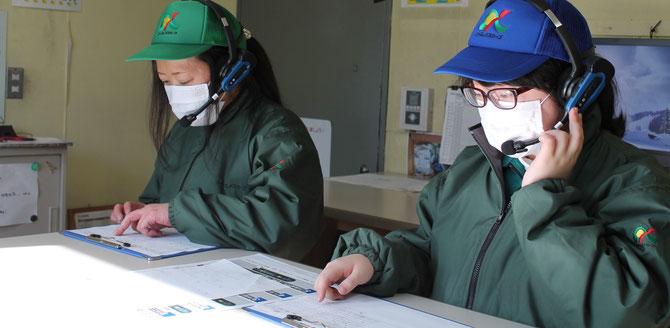 現在、尾道に導入されているボイスシステムが、桶川流通センターのDC出庫検品で導入されます。現在、桶川DCでは1月24日(火)からの本稼動に向けて、教育期間として現場の作業者間でテストを行っています。検品表を手にボイスシステムの取り扱いの指導が行われています。 また、出庫事務所の出入り口横にはディスプレイ画面が設置され、積み込みに来た作業者に対して、進捗状況が分かるように表示されています。進捗状況は色つきで表示され、ひと目見て分かりやすく見えるように工夫されています。