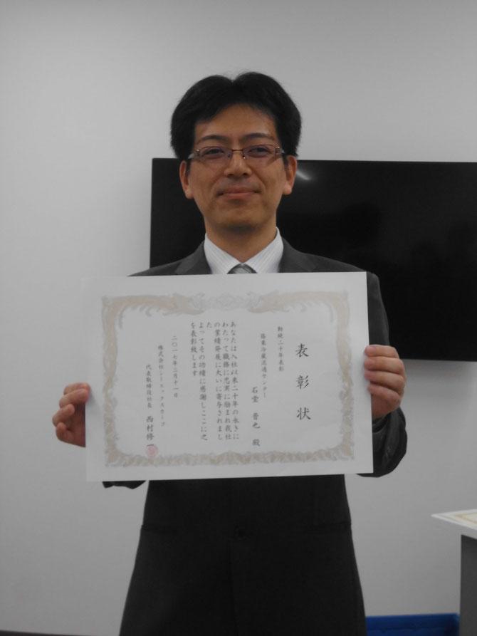 4月18日(火)篠栗冷蔵流通センターにて永年勤続20年表彰式が行われ、1名の方が受彰されました。 当日は、表彰状と副賞が手渡されました。受賞者から、20年続けてこられた想いと今後の意気込みが語られました。