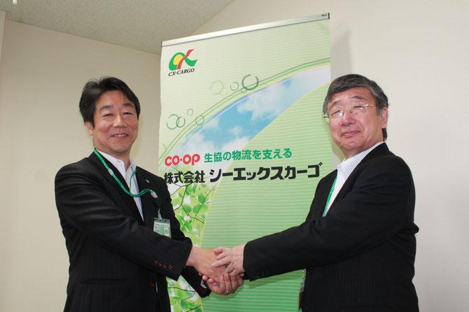西村前社長(右)の想いをしっかりと受け取る山田新社長(左)