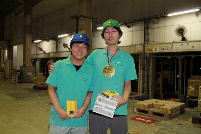 出庫AM班 1位若林さん(右)と2位二宮さん(左) ライバルだけど日頃は仲良しです