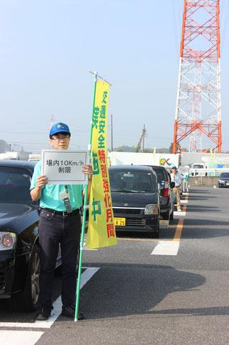 案内板には「場内10Km/h制限」「一旦停止」など、車のルールから、降車し職場へ向かう社員へ向けた「ここを渡ってください」などの徒歩のルールが書かれており、一連のルールが再確認されました。