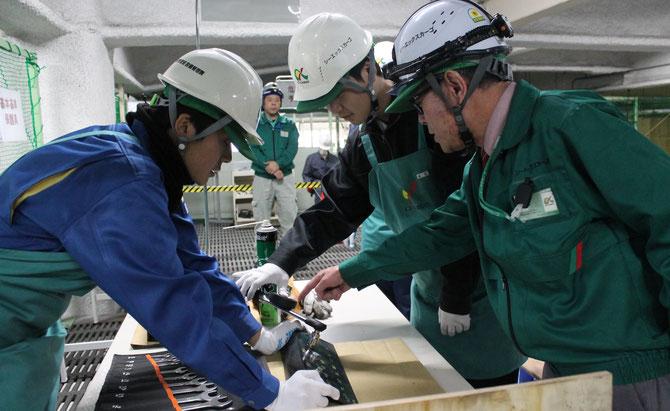 一日目と二日目には、座学と現場見学、SC作業体験、三日目には設備課の研修と座学が行われました。SC作業体験の、一次仕分け・オーダー集約・寄せでは、慣れない作業・環境下ということもあり、緊張した表情で生徒のみなさんは作業をしていました。設備研修では、設備課で共育・研修でも使用する「安全道場」で安全に対する体験をしたり、テストラインを使った構造の仕組みについて、説明が行われました。
