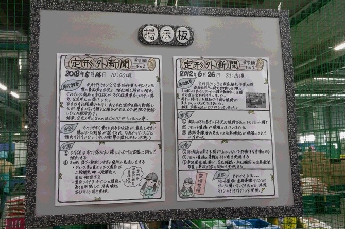 過去の労災事故事例を新聞形式で貼り出し、共有する