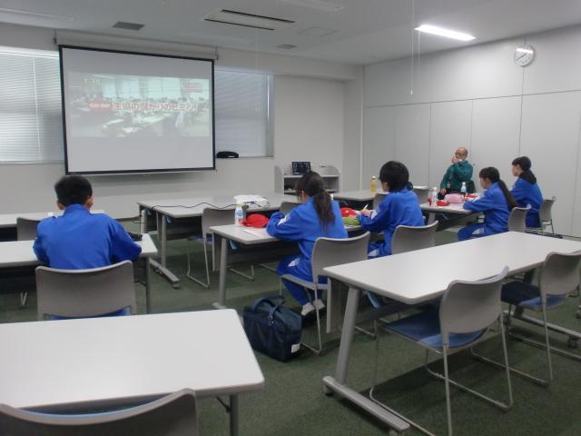 当日は、野田流通センター長から生協・物流・シーエックスカーゴについて説明された後、職場見学が行われました。質疑応答では、生徒から「やりがいは何か」「喜びにつながったことは何か」など、働くことについてのさまざまな質問が出てきました。