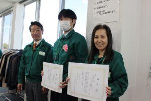 | 4月15日(月)、商品管理センターと本社で勤続20年表彰式が行われました。表彰者の方からは「この喜び以上のお返しをみんなにしていきたい。」「子供の成長に合わせて、働き方を調節していただけたことは大きかったです。」「今回のことは通過点として引き続き頑張っていきたい。」「昔はマニュアルもなく、先輩に聞きながら作業していました。これまでの経験を次の世代にも引き継いでいけるように頑張っていきたい。」と、共に働く仲間に対する感謝の気持ちや、これまでの想いが周りにも伝わり、職場が温かくなったひとときでした。 |