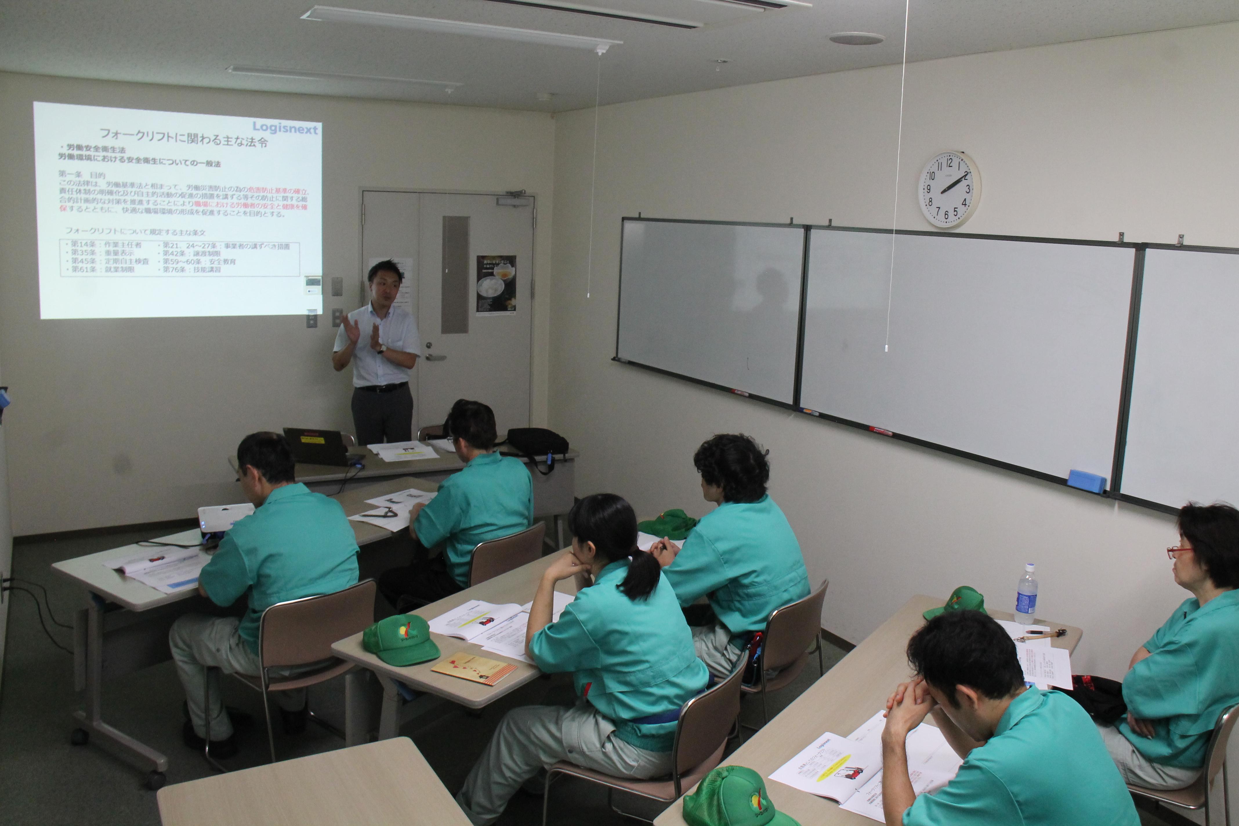 7月30日(火)、桶川流通センター業務2課でロジスネクスト東京株式会社から講師を招き、フォークリフトの構造や法規をテーマにした安全講習会が開かれました。この日の開催は、2回に分けて行われ、フォークリフト乗務初心者を中心に、業務2課として労災、商品事故防止に向けた安全に対する取り組みとして実施されました。今回はフォークリフトそのものを知るために、構造の視点からリーチやカウンターなどの種類や機能、特性、その特性から来る危険、乗務前後の種類の違いによる点検方法の注意点を教わりました。この講習の効果として、「なぜこの行為が危険なのか?」が、フォークリフトの構造を知る事で、日常の安全教育とも結びつき参加者の意識向上につながりました。
