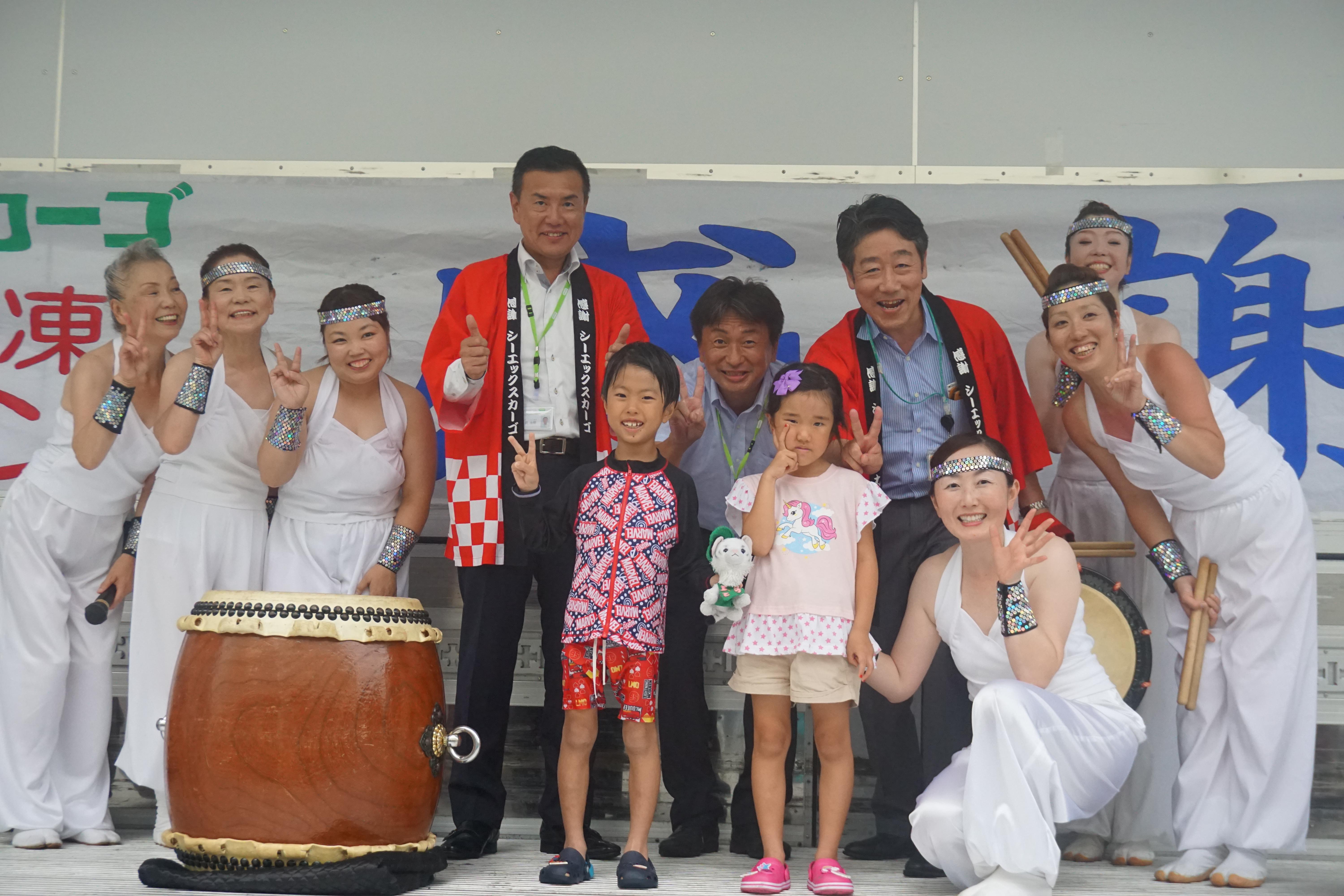 トラックの荷台を活用したステージ上で前年に続き印旛龍凰太鼓の演奏から感謝祭がスタートし、会場を沸かせました。印旛龍凰太鼓のほかにも社員によるギターやフルートの演奏、印西○×クイズではさまざまなジャンルからが出題されました。