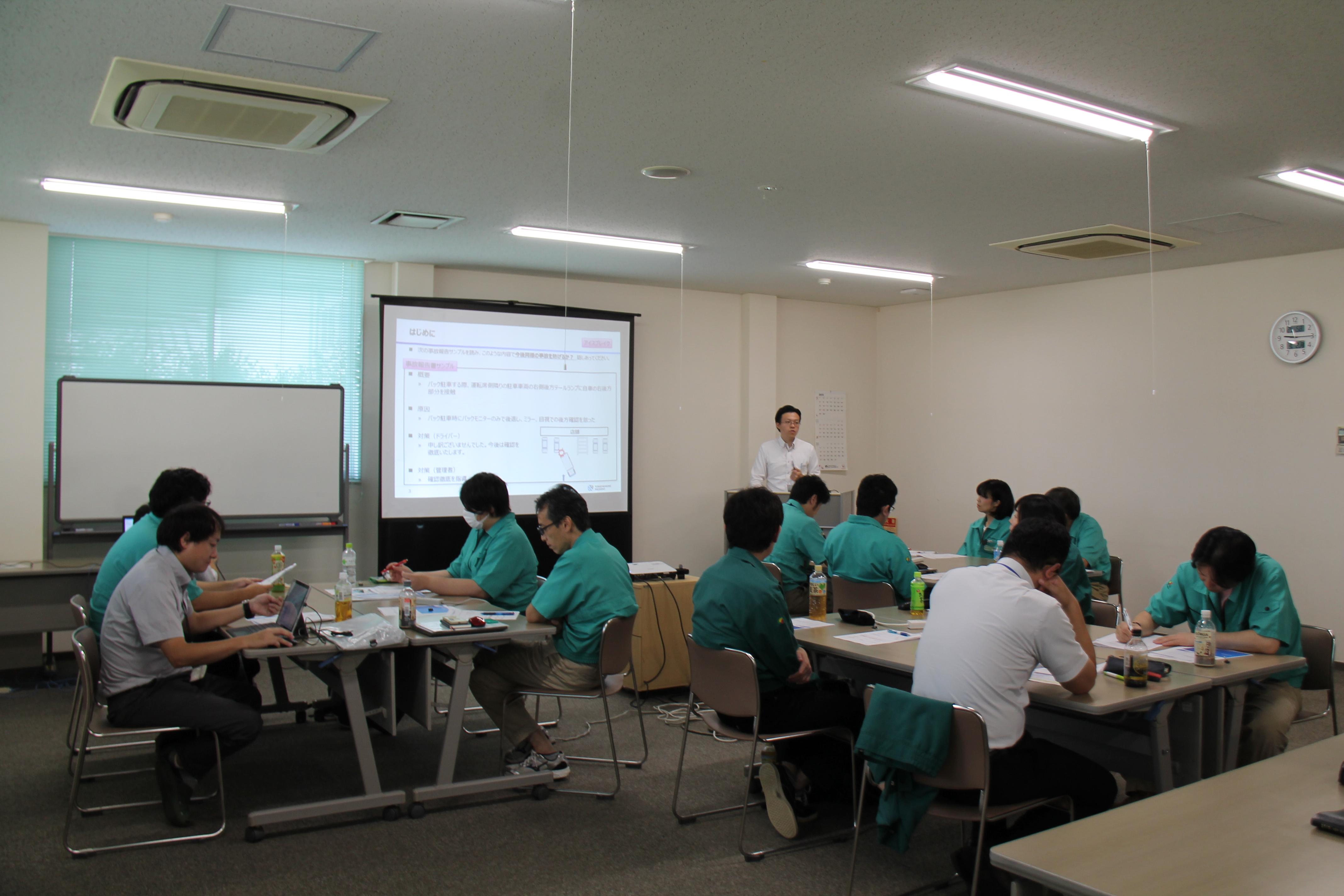 9月2日(月)、本社にて東京海上日動リスクコンサルティング株式会社の方を講師に招き、PDCAサイクルを構築してもらう為の研修が行われました。交通安全特別強化月間の一環として、手順指導ツール『~の安全習慣』を各営業所で取り組み、その後も継続活用してPDCAサイクルを構築することを目的としています。この研修には直接参加のほか、テレビ会議を利用して遠方の事業所からも運行管理者が参加しました。