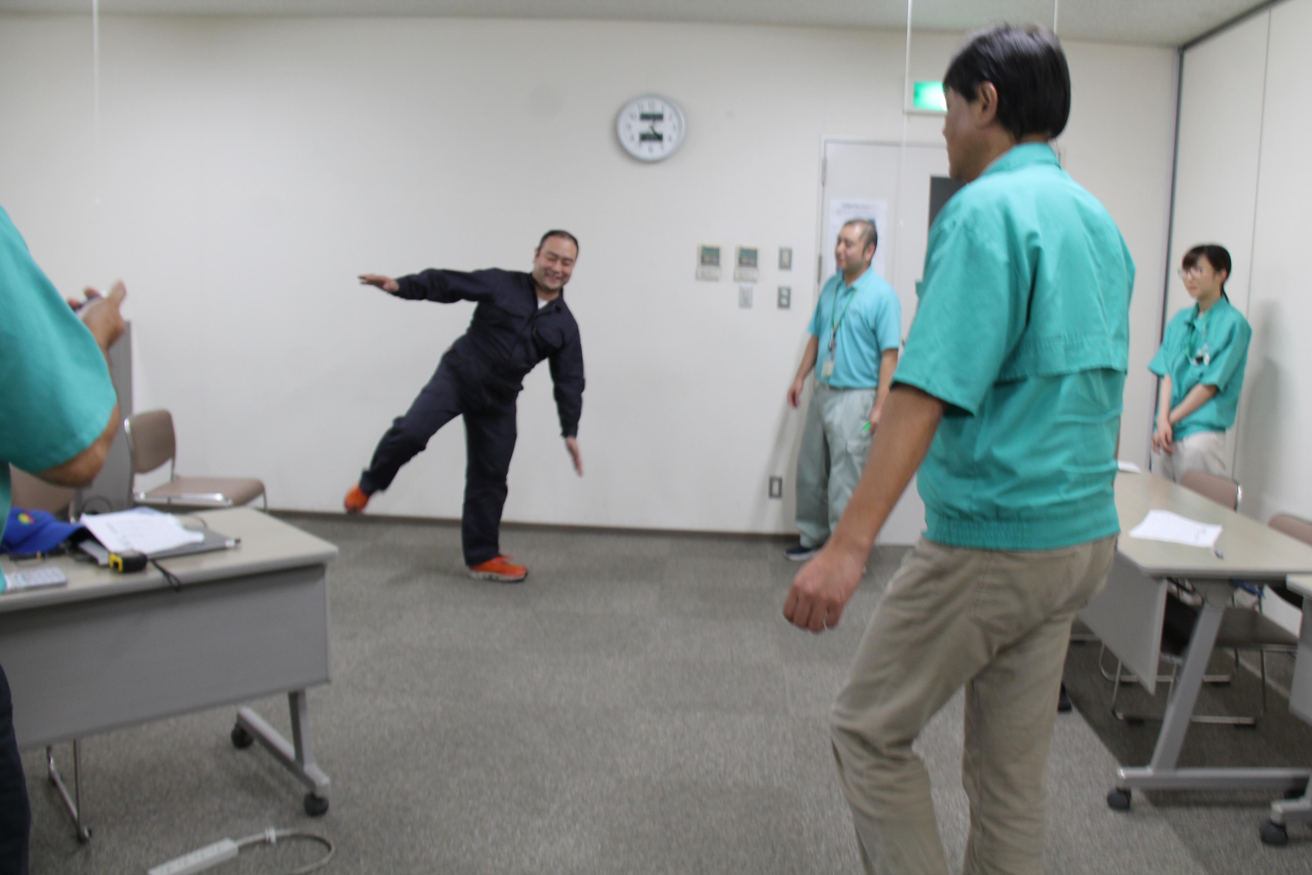 9月11日(水)、第6回桶川流通センター安全衛生委員会の後に、「転倒防止!セルフチェック」が行われました。桶川流通センター、関東配送センターから参加し、“転倒しやすいかどうかを自ら知る”ということをテーマに、体を動かしました。事前に自分がどれだけできるかを予想し、自分の歩幅の限界を測る、片足立ちをして何秒立っていられるかなど、5つの項目でテストをしました。結果をレーダーチャートで照らし合わせることで、自分の運動能力が思ったより衰えていることに気付き、日常の業務でも気を付けようという意識が生まれました。