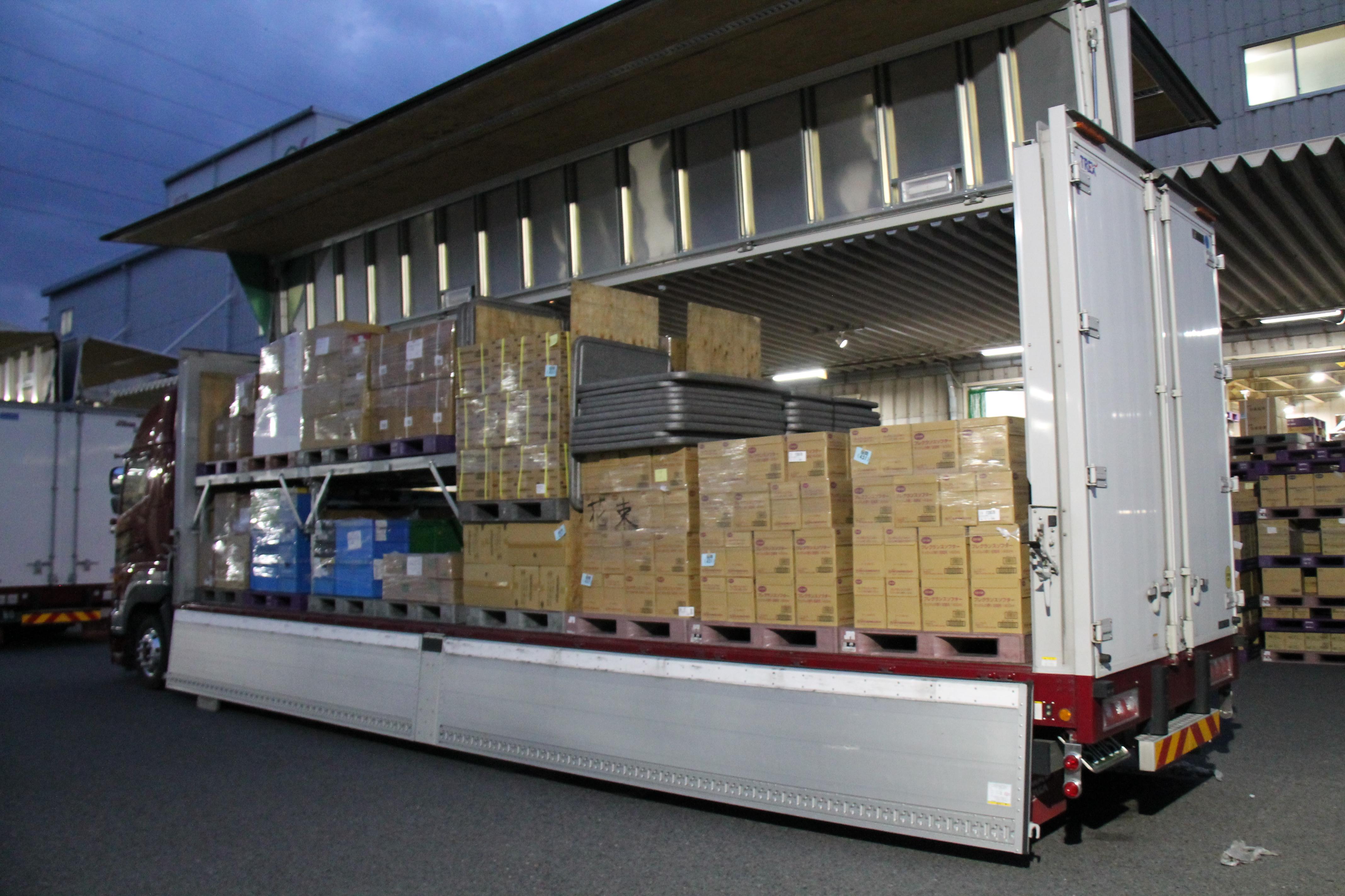 9月20日(金)、関東配送センター桶川事業所にて、配送効率向上を目的にトラックステージの使用テストを行いました。7月の記事でも紹介しましたが、良好なテスト結果が得られたため、今回はさらにトラックステージを増やしてテストを行いました。