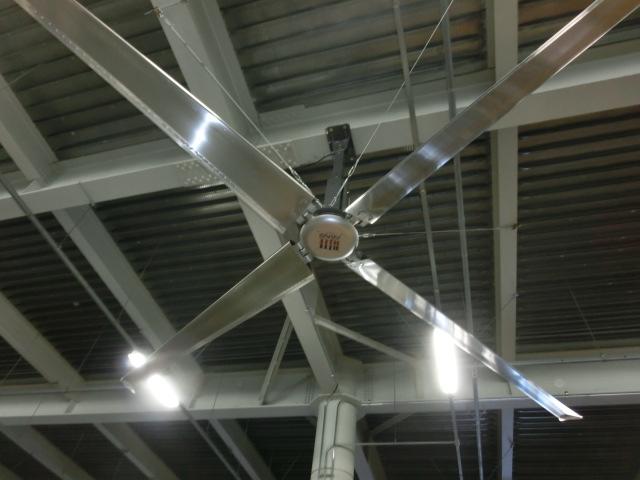7月に桶川流通センターで取り付けた大型空調ファンが好評だったことを受け、9月18日(水)尾道流通センター1階のSC入庫に1台と別積みエリアに2台設置されました。また、9月13日(金)~14日(土)には野田流通センターの1階店舗センターL型に6台配置し、20日(金)~21日(土)SC入庫に1台と2階SC別積みエリアに1台取り付けました。ファンは桶川流通センターと同じもので、まだまだ暑い庫内での作業環境改善が期待されています。