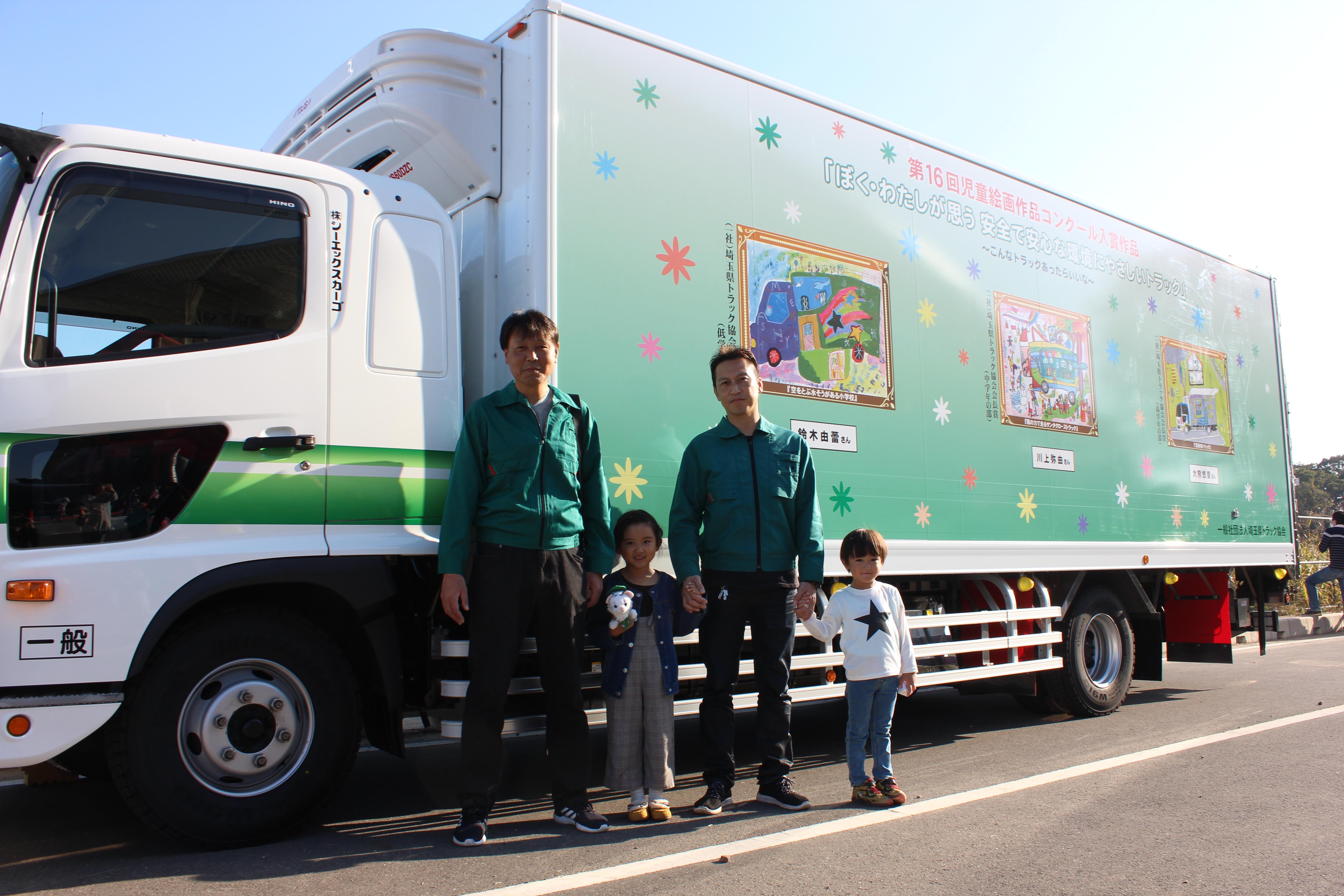 受賞した子どもからは「夢と願いを込めて描いた絵です。事故のないよう安全運転で走ってください」と心のこもったメッセージをいただきました。彩やかなトラックが街を安全に駆け抜けていきます!