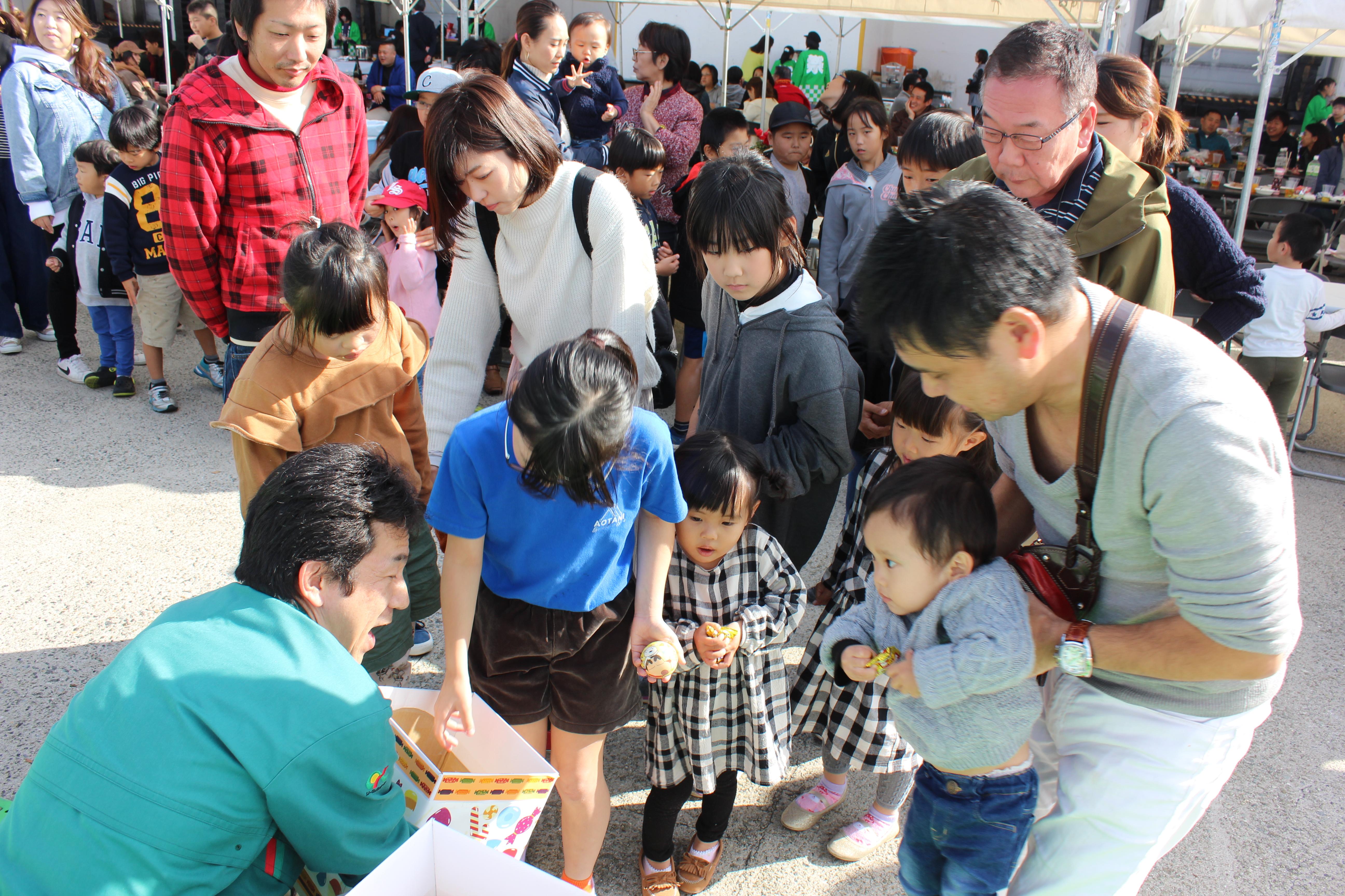 司会進行は昨年も司会を担当したベテラン社員が務め、 今年はさらにパワーアップしたトークとパフォーマンスで、ビンゴゲームやじゃんけん大会を大いに盛り上げ、会場が笑いの渦に包まれました。屋台では神戸ならではのご当地メニューがふるまわれ、焼きそばとご飯を一緒に焼いた「そばめし」や「神戸牛の焼肉」、地元灘の酒などが提供されました。季節外れの暑さということで、屋外での開催にも関わらずアイスが大人気でした。抽選会では、絶妙な司会で会場を沸かせ、景品を貰えなかったと落ち込む参加者へ、敗者復活戦までするまさかの展開!数々の景品が用意され、最後まで楽しい感謝祭となりました。