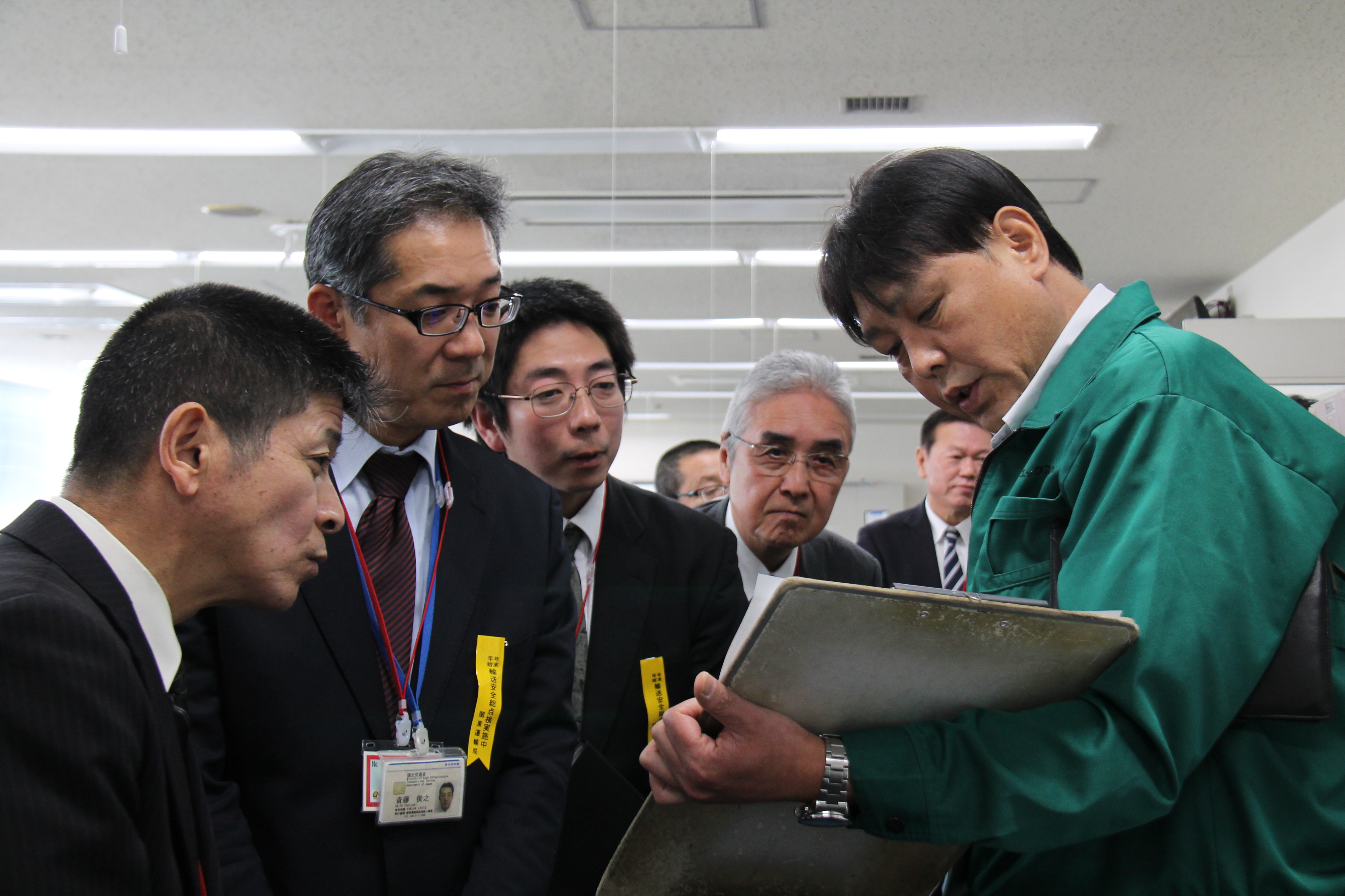 12月16日(月)、関東配送センター桶川事業所にて、関東運輸局埼玉運輸支局長と専門官による「令和元年度年末年始の輸送等に関する安全総点検」の査察が行われました。安全総点検は国土交通省が自動車運送業者へ呼び掛けているもので、年末年始の輸送機関などの安全性の向上と、輸送安全などに対する意識の高揚を図るために実施されています。