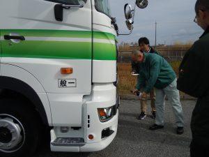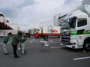 小野営業所管理者からは、「地場配送で使用しますが、10年後も同じ輝きがあるよう、事故なくきれいに乗ってください」、そして神戸営業所管理者からは、「安全運転支援機能に頼らず、確実な目視による安全確認を心掛けて無事故を目指してください」との話がされました。