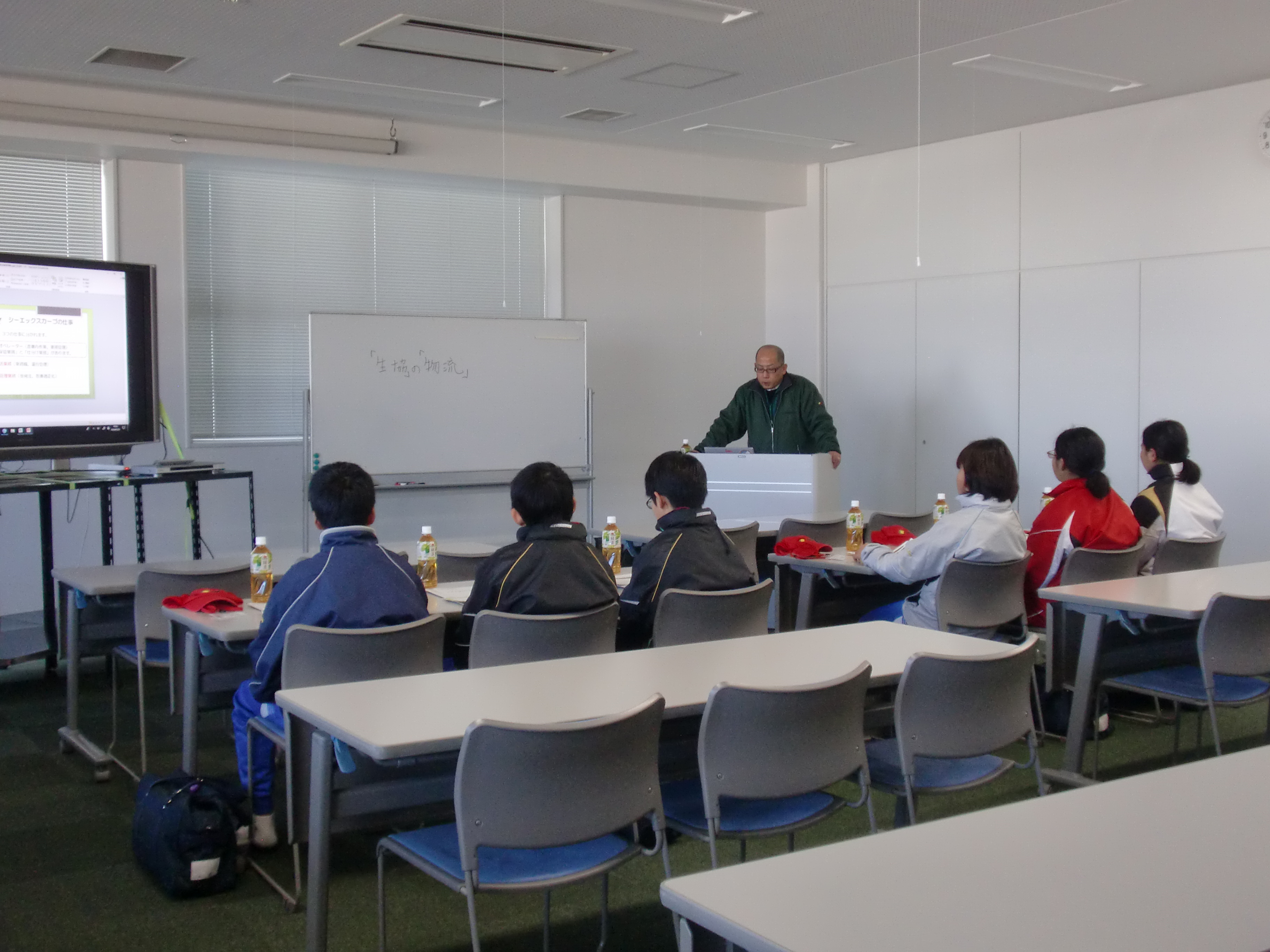 当日野田流通センター長から、パワーポイントや動画を用いて生協・物流・シーエックスカーゴについて説明を受けた後、庫内を見学しました。最後の質疑応答では「仕事をしていて嬉しかったことはありますか」「働くにあたって大切にしていることはありますか」といった仕事に関する質問のほか、会社の規模や社員についてなどさまざまな質問が出てきました。