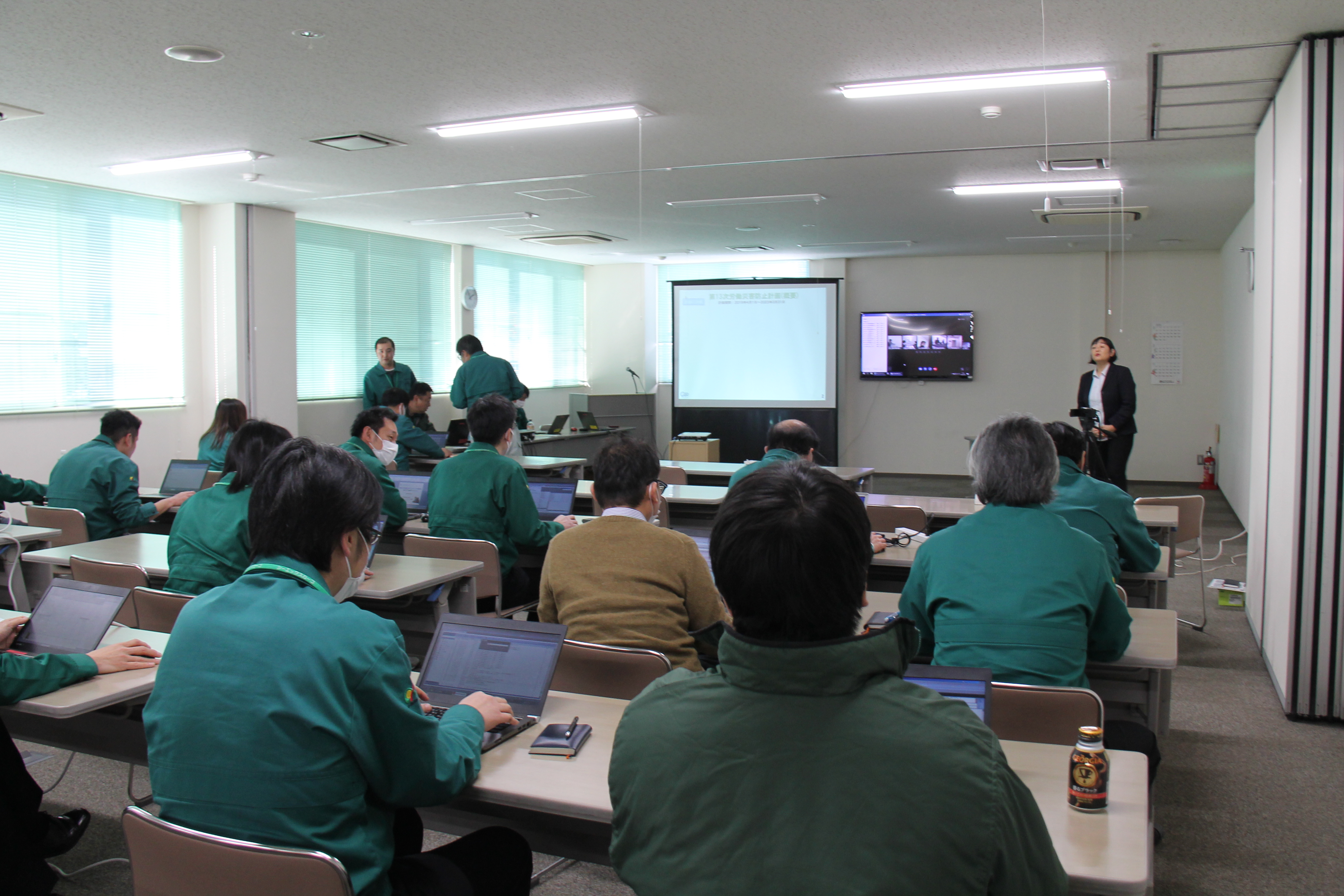 昨年11月に全社で実施したストレスチェックの集団分析結果を受け、2月6日(木)本社会議室で「集団分析結果を活かしたストレス対策研修」が行われました。中央労働災害防止協会より講師を招き、所属長・課長を中心に分析結果を見ながら、参加者同士が自部署の傾向について話をすることで理解を深めました。