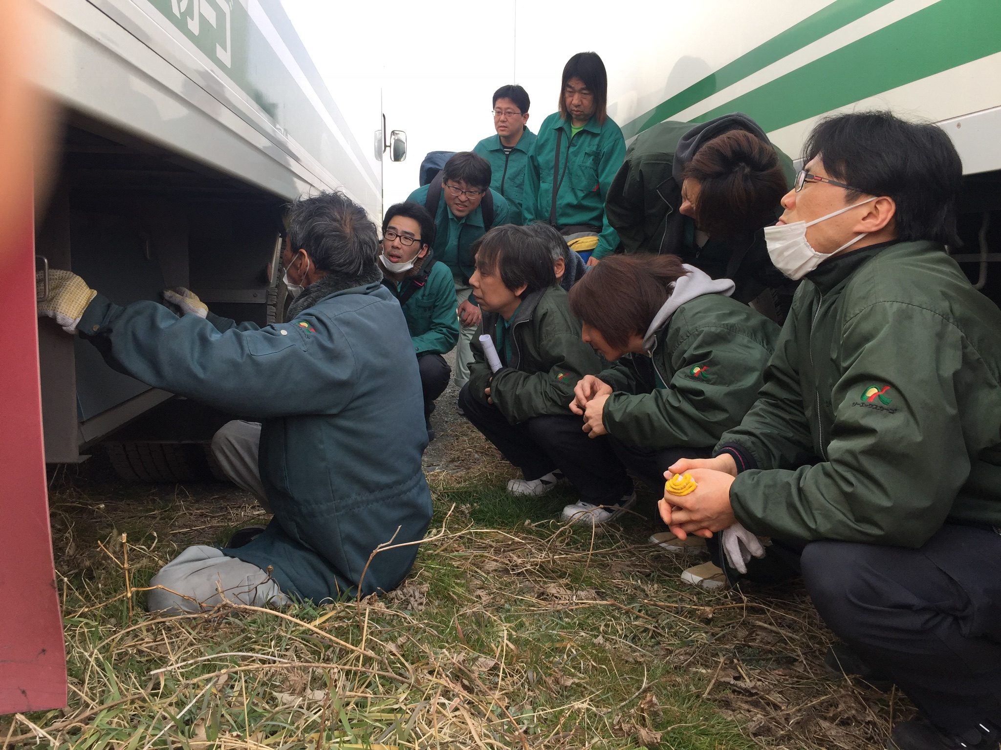参加した乗務員は改めて点検の注意事項を留意した上で、日常点検に含まれない箇所を定期的に点検する大切さを実感する場となりました。最後、管理者からは「月に1度は日常点検と一緒に、今回の確認箇所を点検してほしい」と乗務員へ伝えられました。