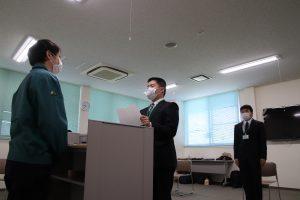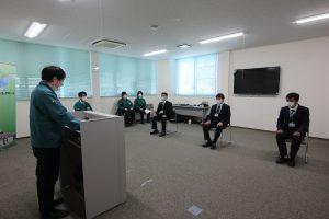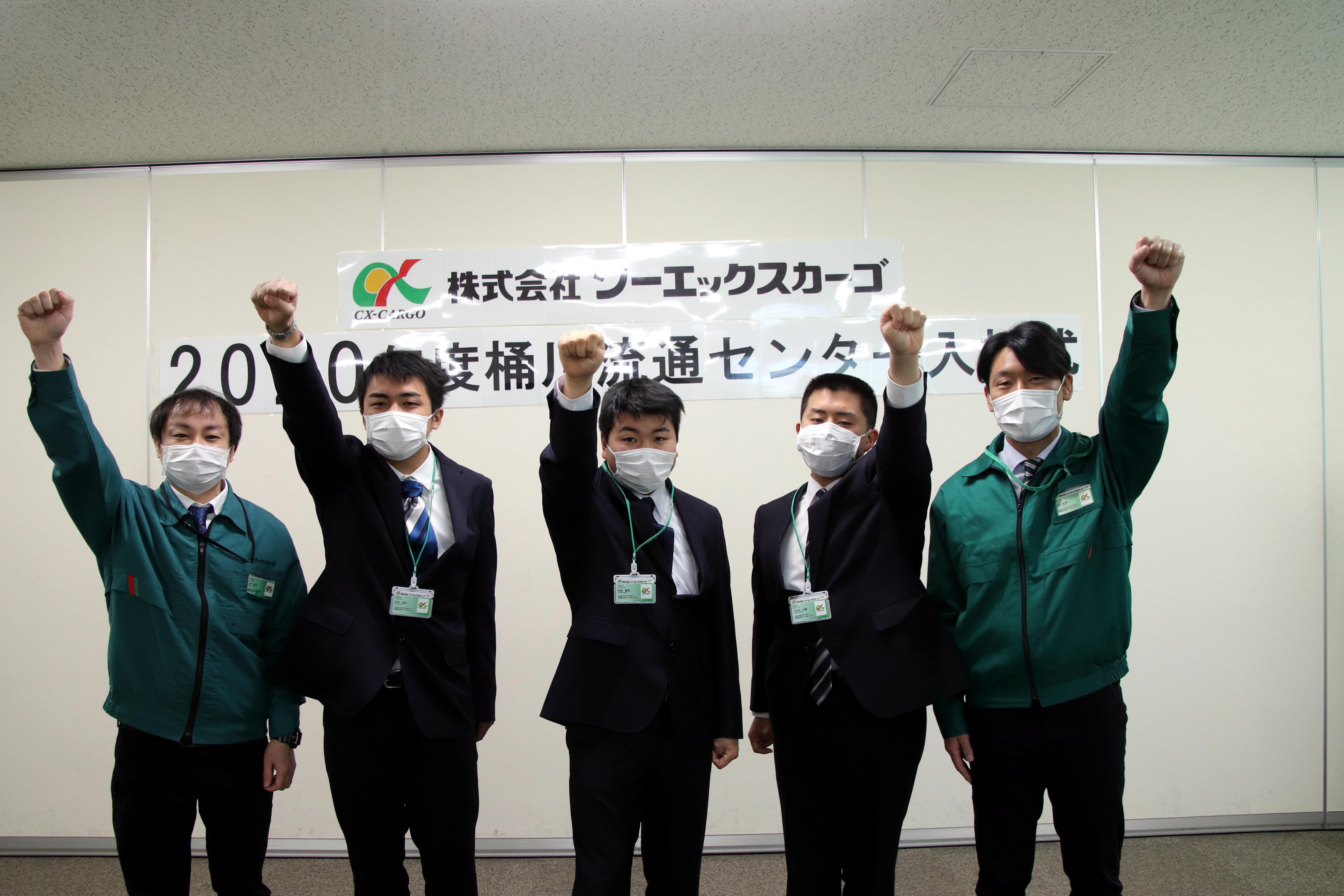 4月11日(土)桶川流通センターにて、特別支援学校・専門学校卒の新入社員3人の入社式が行われました。学生生活を終え、社会人ならびにシーエックスカーゴの社員として役割と責任を認識してもらうことを目的とし、今回初めての開催となりました。保護者も同席の予定でしたが、新型コロナウィルス感染拡大防止のため、新入社員と社員のみの参加となりました。