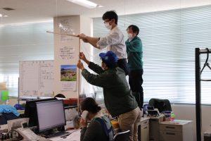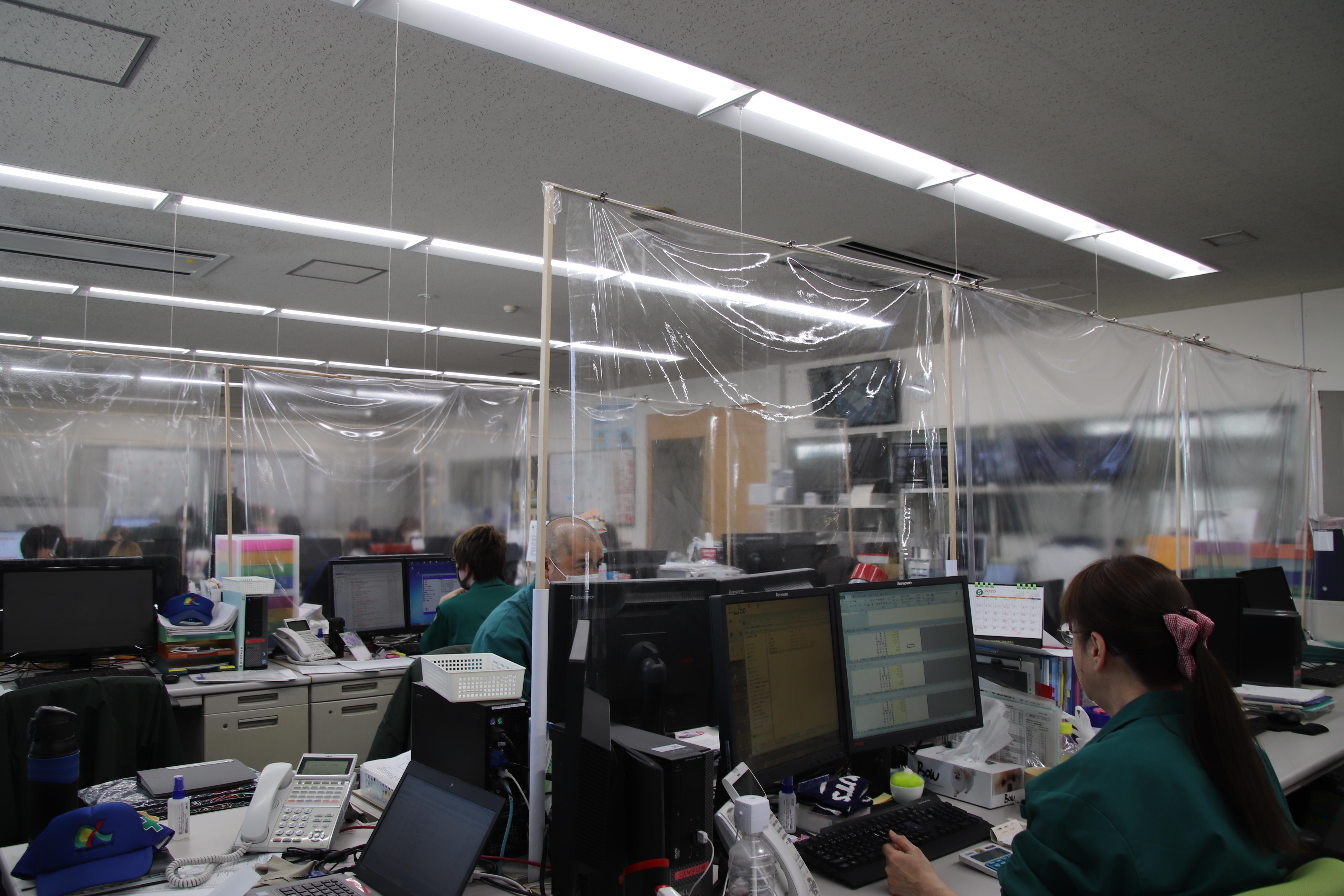 新型コロナウイルス対策として、各センターで飛沫感染を防ぐためのパーテーションを取り付けました。机の間を仕切るため、木材や園芸用の支柱、ビニール、デスクマットなど、それぞれ手に入りやすい材料を使い工夫して制作しました。