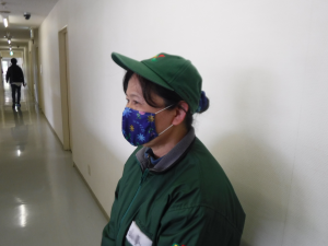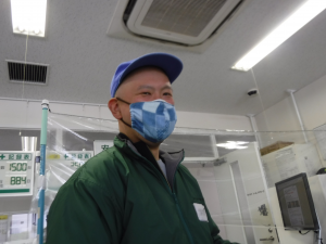 | 新型コロナウイルス予防対策として、印西冷凍流通センターでは社員がそれぞれに工夫を凝らした手作りマスクを使用しています。冷凍センターのため、以前から作業中のマスク着用者は多かったのですが、マスク着用が身近であるからこそ、おしゃれな手作りマスクで気持ちを明るく、このコロナ禍を乗り越えようと前向きに業務に取り組んでいます。 管理者は「マスク着用で感染対策をしているところですが、少しでも明るい気持ちになれたらと思い、ぜひ紹介したいと考えました。楽しむ気持ちは大切ですし、周囲も楽しませてくれています。」と話しています。 |