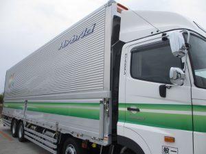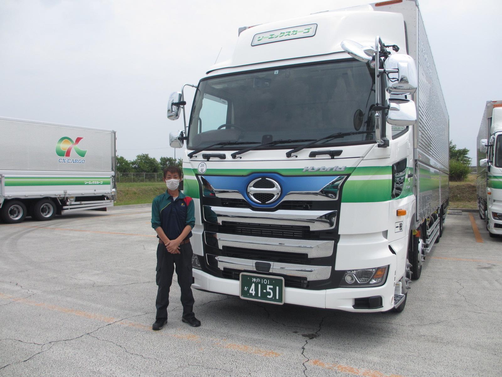 | 小野営業所には昨年12月にも同じハイブリッドシステム搭載の大型車が導入されており、全3台のうち、2台が小野営業所に配置されています。今回納車された車両には総輪エアサスペンションも搭載され、凹凸のある路面などでも荷に優しい仕様となっており、さまざまな納品条件に対応できるようになっています。 乗務員は「今まで乗っていた車両と比べ、燃費が良く、静かだと感じる。また、左後側方視界補助カメラがついているので左折時に安全確認がしやすくなった」と話しています。 |