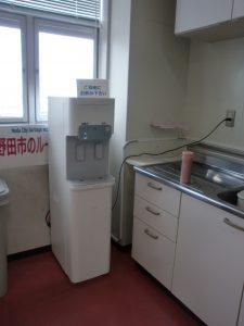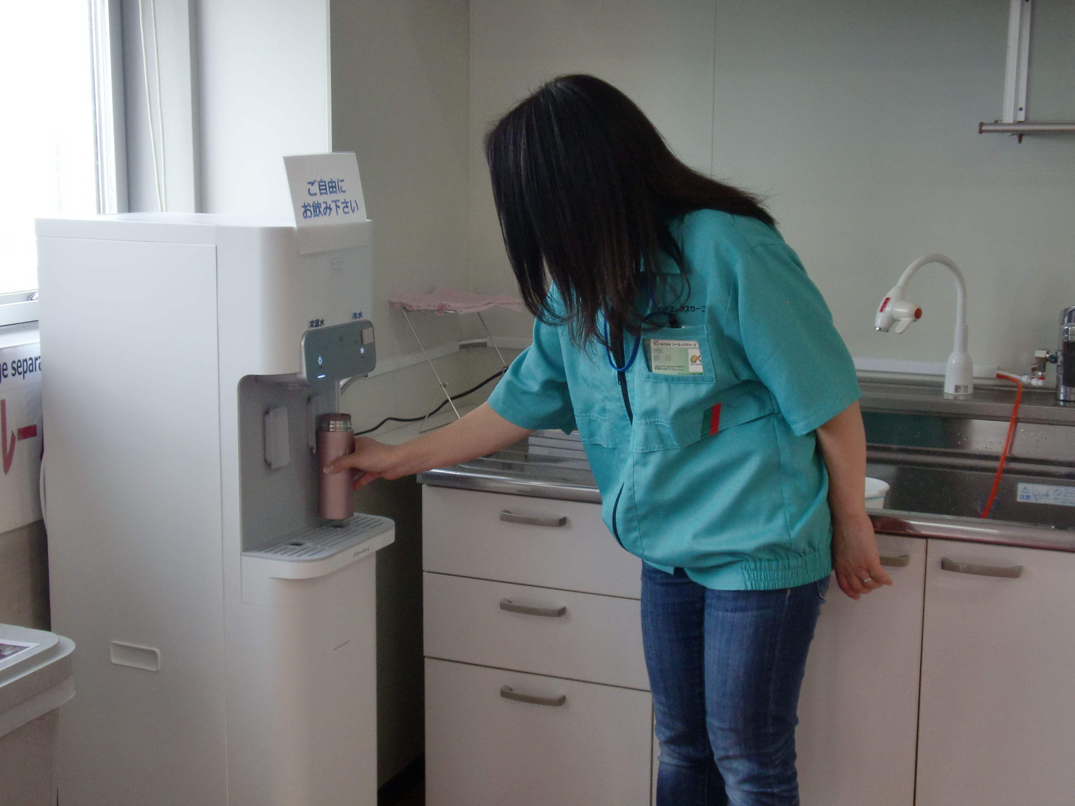 野田流通センターでは、熱中症対策のためサーバー型浄水器が順次設置されています。センターでは以前からテスト機を設置していましたが、社員に好評だったため10台導入し、社員全員にステンレスボトルが配られました。