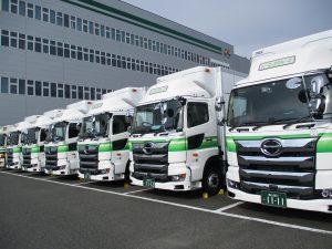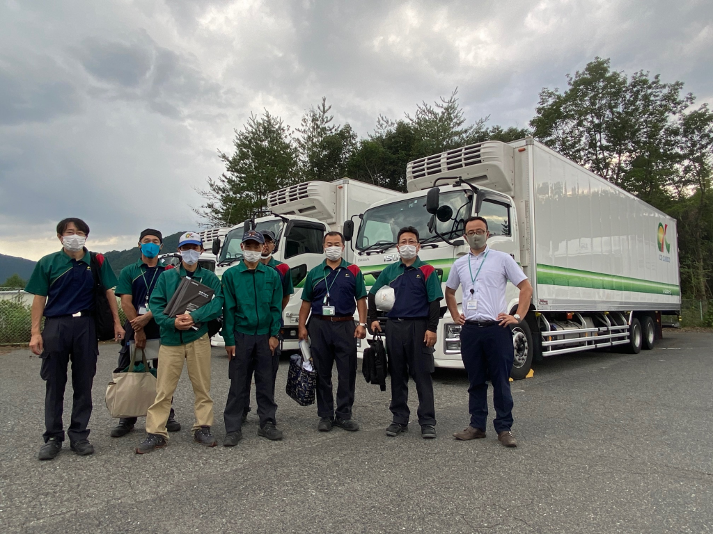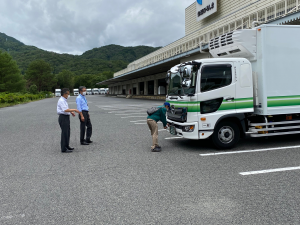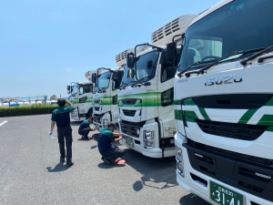 8月からの広島冷蔵流通センター新規事業稼働に合わせて、中四国配送センター尾道班に大型冷蔵冷凍車が4台、広島班に増トン冷蔵冷凍車が1台納車されました。また、これに伴って尾道班に配置されていた大型冷蔵冷凍車5台が、広島班に再配置されました。