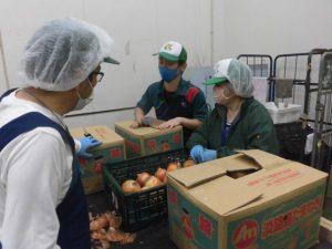 | また、農産加工作業(じゃがいも、たまねぎなど)の一部も自社化しました。加工作業は、入荷商品が規格のサイズをクリアしているか、傷みや不良がないかを見る検品作業や、袋・パックへの詰め合わせ作業を行っています。管理者は、「農産加工作業は広島冷蔵流通センターで初めての業務となります。管理者を含めて知識・経験が不足している点は否めません。まずは品質を低下させないことを最優先とし、組合員の期待に沿えるよう遂行します」と話しています。 |