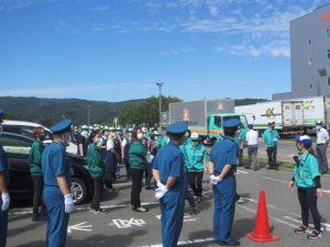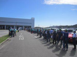 10月7日(水)、尾道流通センターで年に一度の消防避難訓練を午前帯と夜間帯の二部構成で実施し、約500人の社員と消防署の方々が参加しました。訓練では、実際に避難しながら経路や周りとの連携が特に重要であることなどを再確認し、防災隊メンバーは自身の役割を再認識しました。