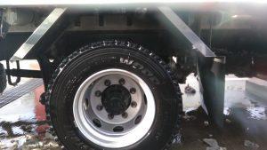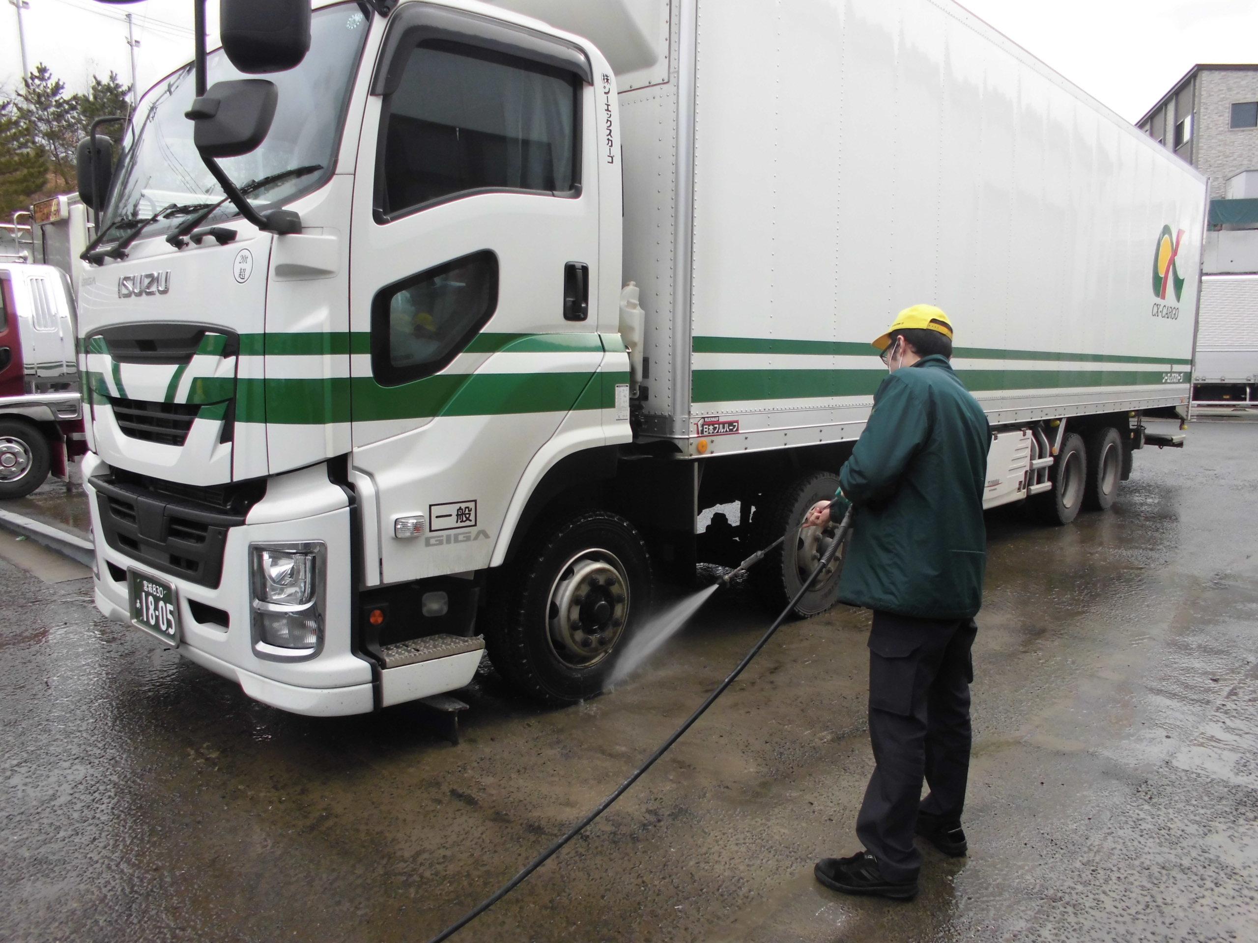 富谷営業所では、昨年のカーゴカップで優秀賞を受賞した取り組みである車両メンテナンスを、現在も継続して続けています。このメンテナンスは、運行時のトラブル・故障による遅延防止、乗務員の精神的負担軽減を目的として行われるようになりました。通常の点検とは別に、不具合が生じる前の予防整備をし、腐食が進行しやすいところを削り、さび止めの布塗や仕上げ塗り、格納式パワーゲートの可動部の油脂不足による動作不良防止のためのグリスアップを、日々の洗浄時、年4回の季節の変わり目などに行っています。