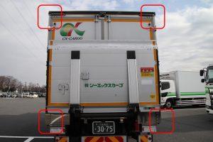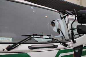 1月より当社保有の全車両285台(トラクタ・トレーラは除く)に、後退時の接触事故を抑制し、運行の安全性を高めていくことを目的にトラックバックソナーの装着が開始されました。このトラックバックソナーは、車両後部の4カ所に超音波センサーを設置し、センサーが障害物を検知した際にバックモニター(もしくはインジケーター)に表示するとともに、警告音でドライバーへ注意喚起を行う装置です。現在、順次装着を行っており3月末までに全車両285台へ装着完了を予定しています。