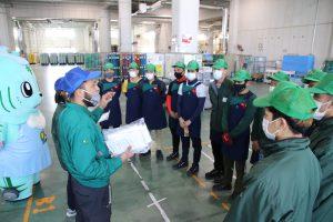 朝礼時に管理者から説明を受ける