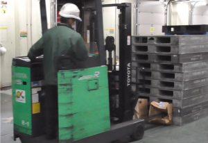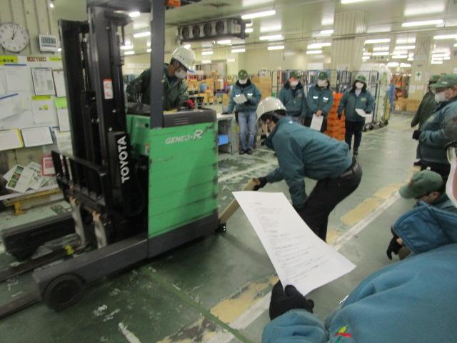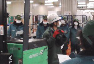 2月23日(火)、篠栗冷蔵流通センターにてフォークリフト危険講習会を実施しました。この講習は、フォークリフトが危険な乗り物であることを社員に知ってもらうことを目的に、フォークリフト従事者とフォークリフトが走行する現場で仕事をする作業者35人を対象に行いました。今回は感染症予防対策もあり、外部の講師を招かずに篠栗のメンバーによる独自の講習会を初めて開催しました。