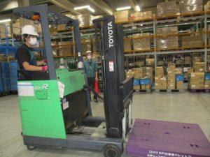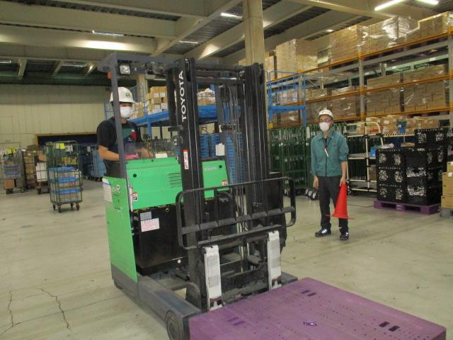小牧営業所で、障がいのある社員がフォークリフト運転技能講習修了証を取得しました。社員本人が自動車免許を取得した際、「本人にやる気があり、修了証取得に挑戦させてあげたい」とご家族からの要望があり、本人からも「職場でフォークリフトの運転ができる社員が少ないと聞いていたので、私も少しでも役に立ちたい。スキルアップのため、いろいろなことに挑戦していきたい」との希望があったため、庫内で練習をサポートするなど、周囲の協力を得ての取得となりました。