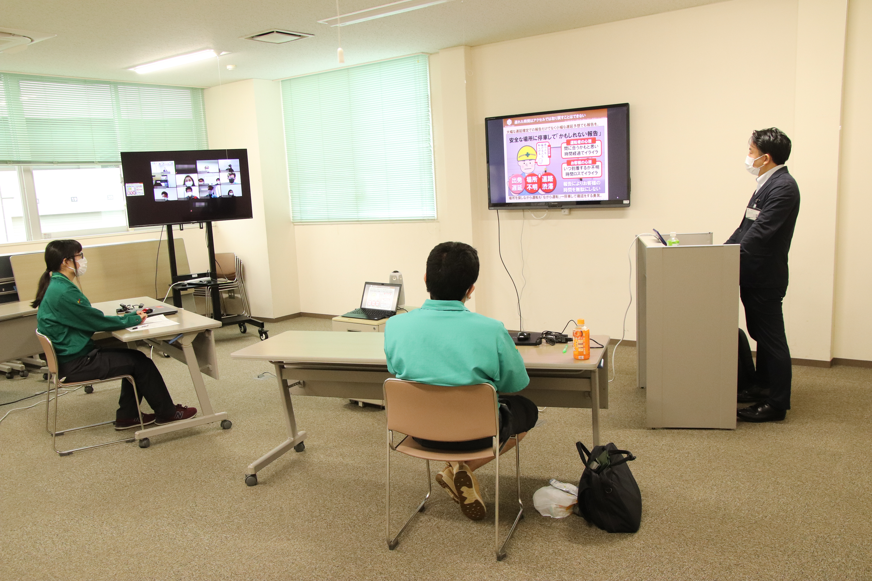 7月8日(木)、2021年度の運行管理者実務者研修を行いました。これは日常の運輸安全の取り組みを進める上で必要となる、乗務員へのコミュニケーションスキルや指導できる知識を向上させるために実施しているもので、道路交通法の遵守や安全運転を実践・継続させ、例年行っている交通安全特別強化月間の取り組みにもつなげることを目的としています。