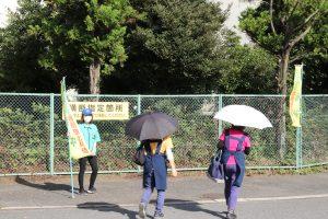 横断指定箇所で声掛けをする(桶川・本社)