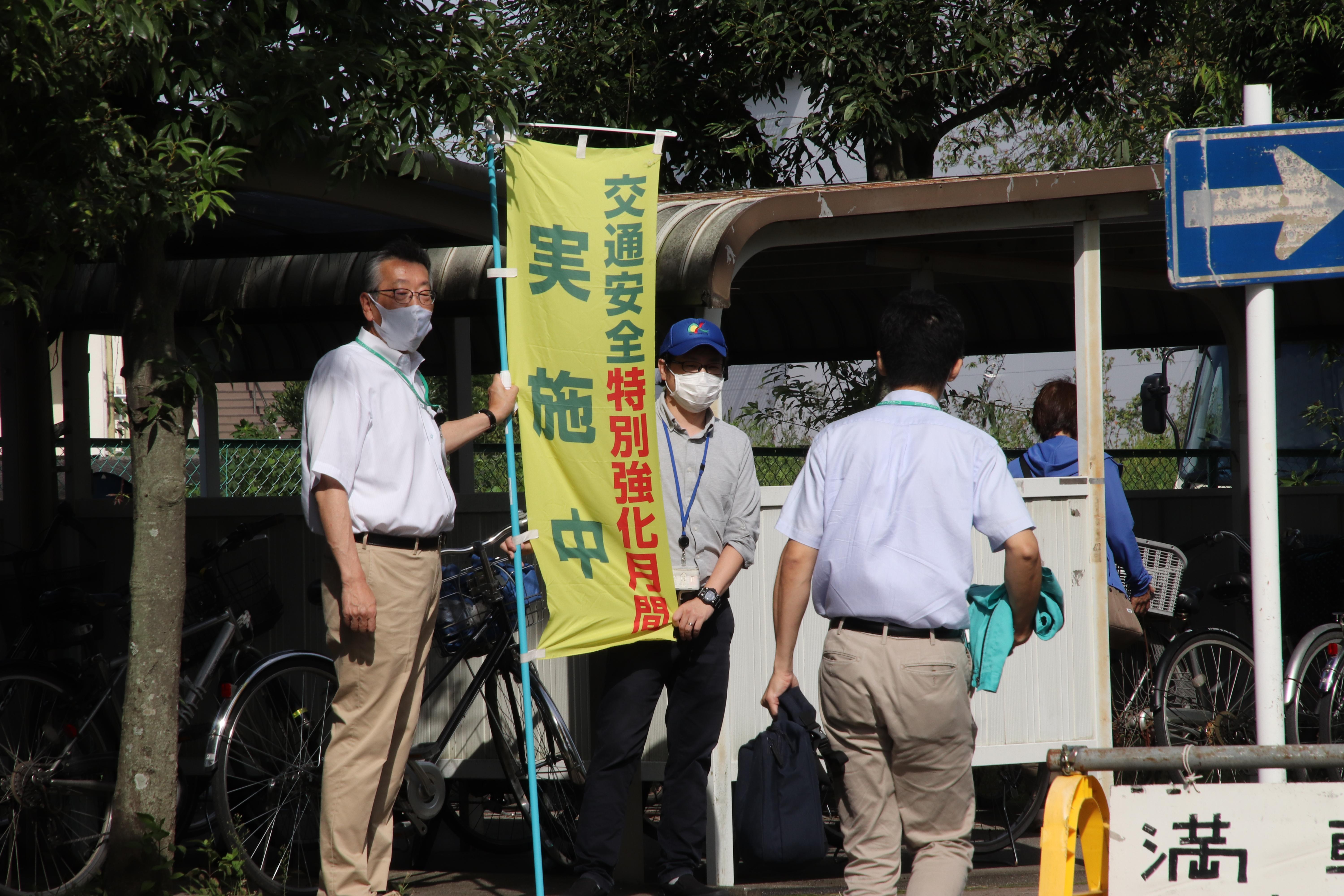 9月13日(月)より、交通安全特別強化月間が開始しました。これに伴い、桶川流通センター・本社では駐車場での制限速度の徹底や、横断指定箇所の注意喚起などの啓発活動を行いました。沿道には社長も立ち、声掛けをしました。また、桶川第2流通センターでは、今回が初めての特別強化月間ということもあり、出勤する社員にビラを配布し、交通安全特別強化月間について周知しました。