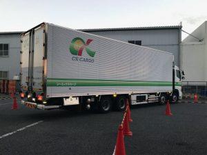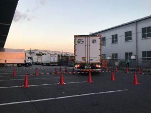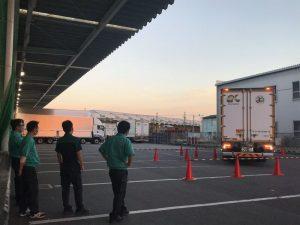 9月29日(水)、小牧営業所輸送課では交通安全特別強化月間の取り組みの一つとして、店舗配送チームを中心とした乗務員の「後退訓練」を実施しました。オーバーハングに注意しながらの後退の訓練で、「OK訓練」と名付けました。