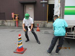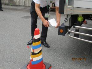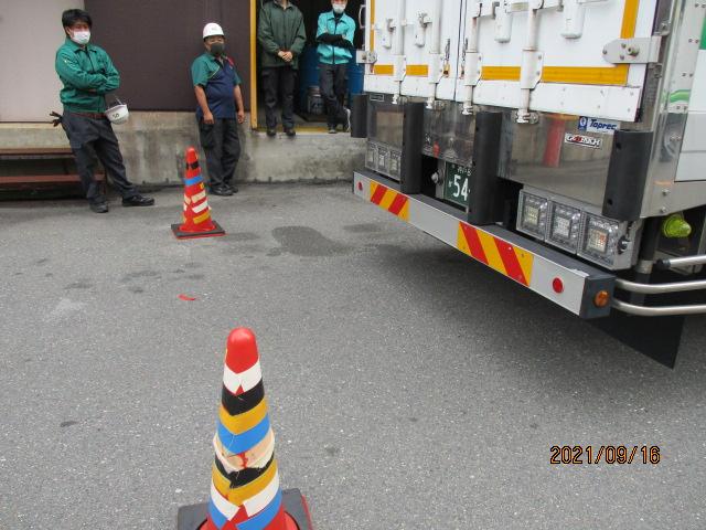 | 交通安全特別強化月間の取り組みとして、9月16日(木)、乗務員班長発案で、目視でのバックとミラーでのバックの見え方の違いを指導したいという意見があり、乗務員ミーティングの時間を使って実施しました。参加者からは「ミラーで確認するのと、目視で確認するのとではずいぶん距離感が違う」「ミラー確認時、まだ大丈夫だと思っていたら目印のコーンを越えてしまった」「用心しすぎてだいぶ手前で停止した。距離を確認するのは難しい」「目視の方が後方の距離を確認しやすい」といった声が上がりました。 また、小野営業所輸送課で実施している「ハザードカード」を利用した注意喚起を神戸営業所でも展開しています。 |