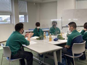 10月4日(月)~10月15日(金)にかけて、各営業所(一部合同)ごとに、21年度新卒半年振り返り研修を実施しました。半年間での自身・同期の成長を知り、業務を振り返り、伝えることで業務の理解を深めることができ、自部署以外の業務を知る機会となりました。先輩社員との交流会では、先輩の経験談を聞き、ディスカッションをして、次の半年間の目標を設定し発表・共有を行いました。さらに、社長と新入社員の交流の時間が設けられ、そこでは社員から「朝のルーティンは?」「社長になり、変わったことは?」などの質問が上がり、社長のオンオフを垣間見ることができたようでした。