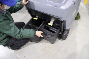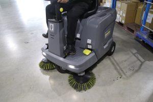 今年3月に開設した新センターということもあり施設も新しく、つるつるした床の上に薄く積もった細かいほこりを踏むと滑りやすいため、作業者から「床が滑って危険」という声が上がっていました。そこで安全対策として複数の案を検討した結果、乗車型スイーパーのリースを決めました。バッテリー駆動で特別な免許も必要なく、操作も簡単なため、広い庫内も楽に掃除できるようになりました。週2回程度稼働している現在は、床が滑るという声はなくなりました。