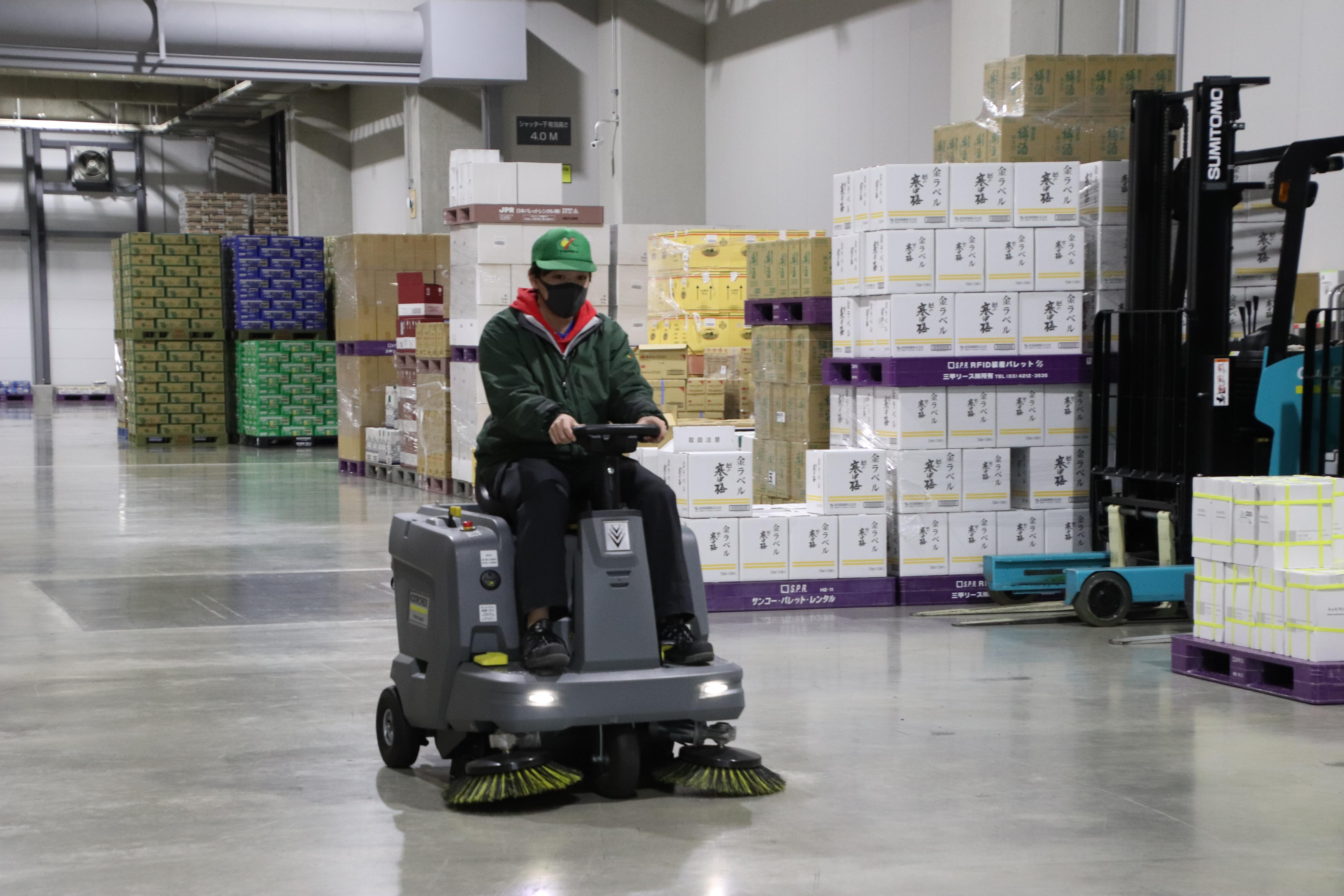 コープデリ桶川加納NB商品センター(桶川第2流通センター1階)では、4月から「乗車型スイーパー(掃除機)」を導入しています。
